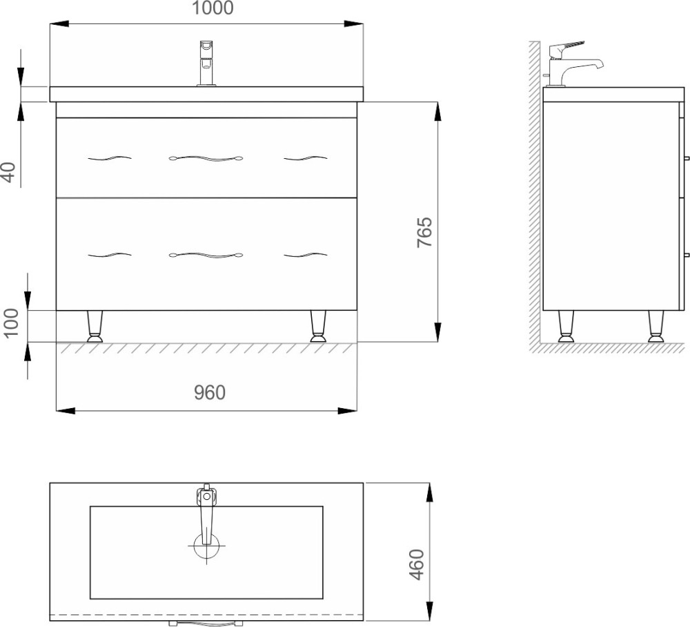 Расположение умывальника - по центру,