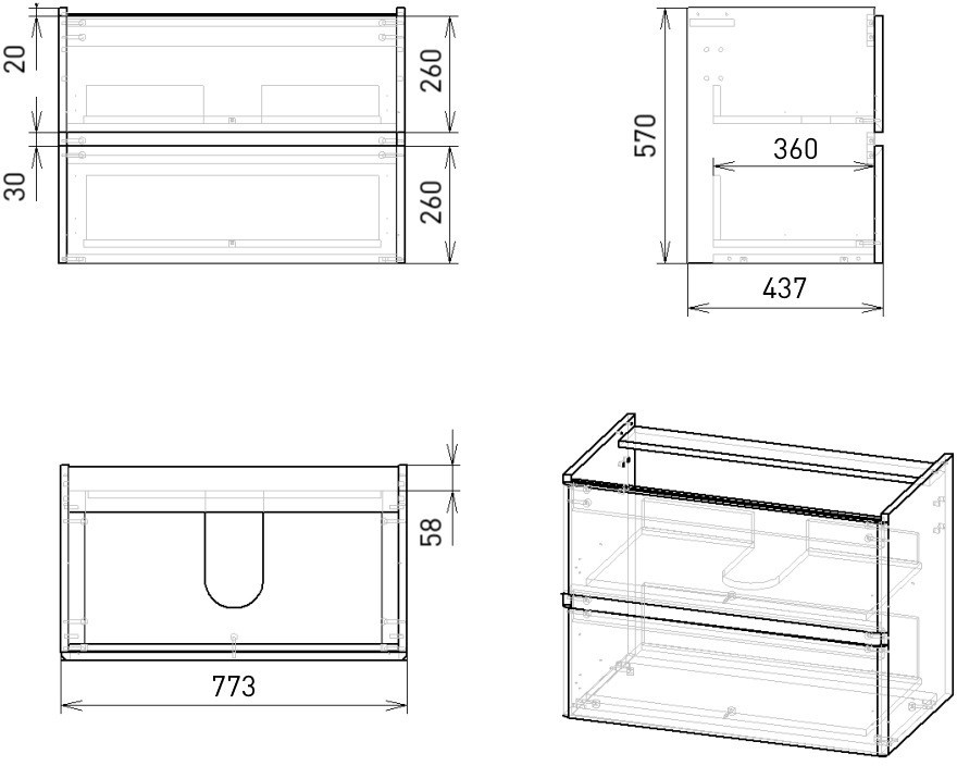Открывание - выдвижные ящики,