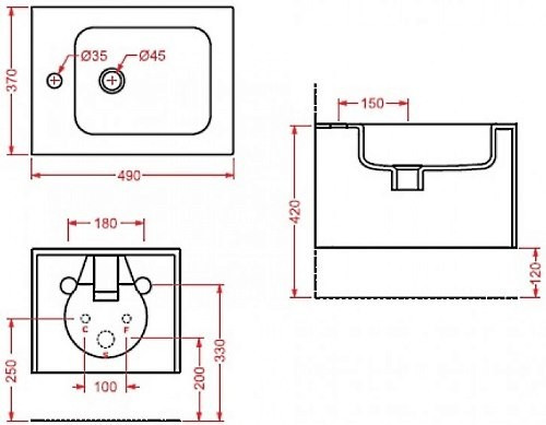 Форма чаши - прямоугольная,