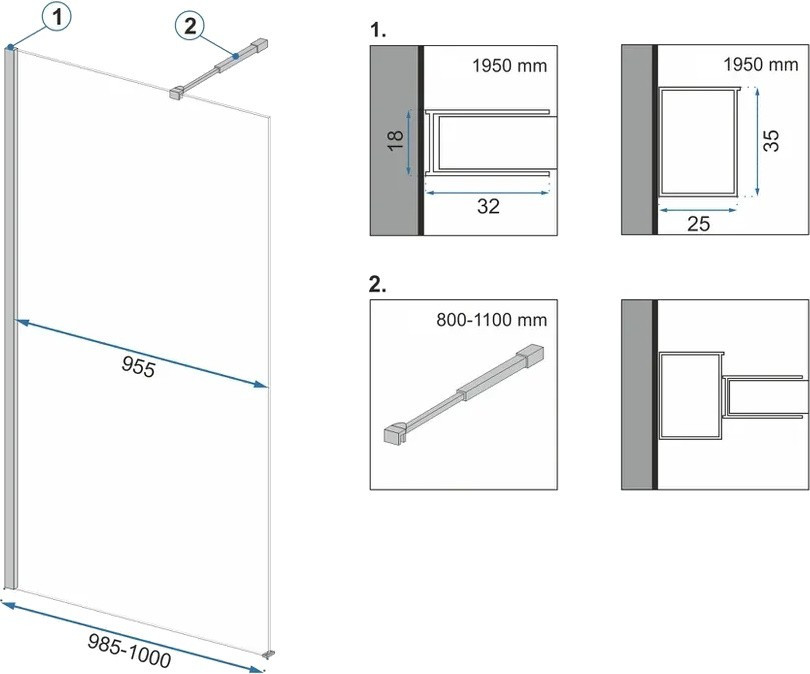 Тип - перегородка (walk-in),