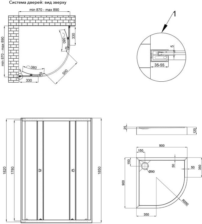 Материал поддона - акрил,