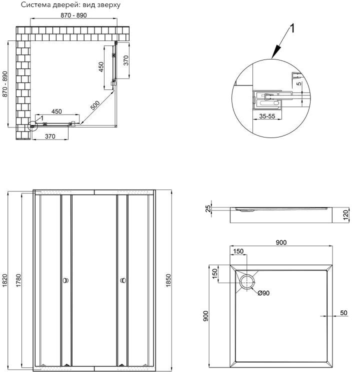 Материал поддона - акрил,