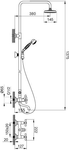 Размеры верхнего душа - 145 мм,