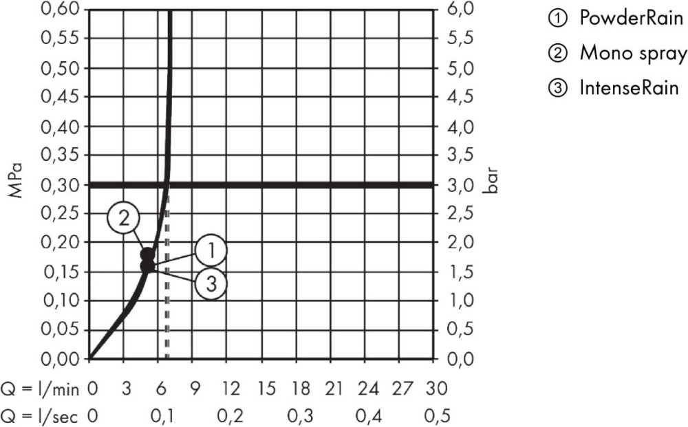Расход воды (ручной душ) - 6.9 л/мин / максимальный, при давлении 3 бар /,