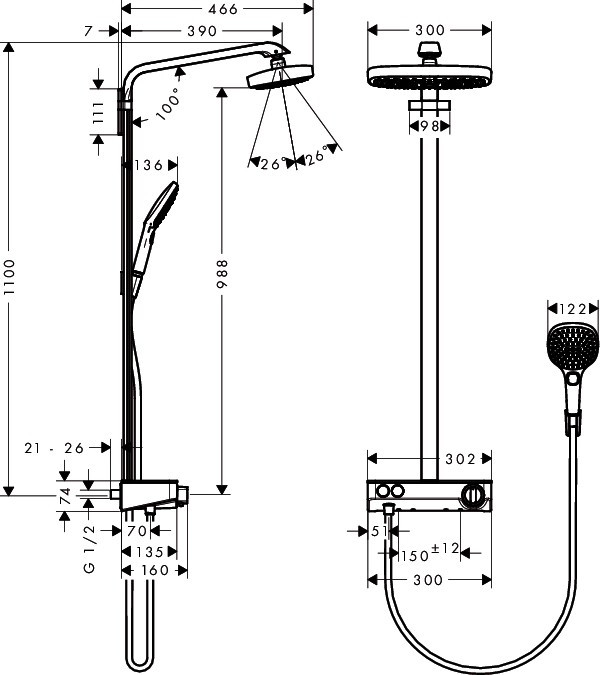 Hansgrohe Raindance Select E 300 2jet Showerpipe, ½’ Raindance Select Hansgrohe 27126000
