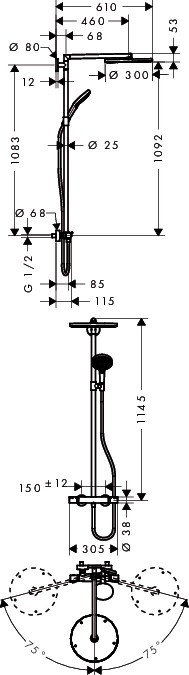 Душевая система Hansgrohe Raindance Select 300 Showerpipe, с термостатом, 27114000