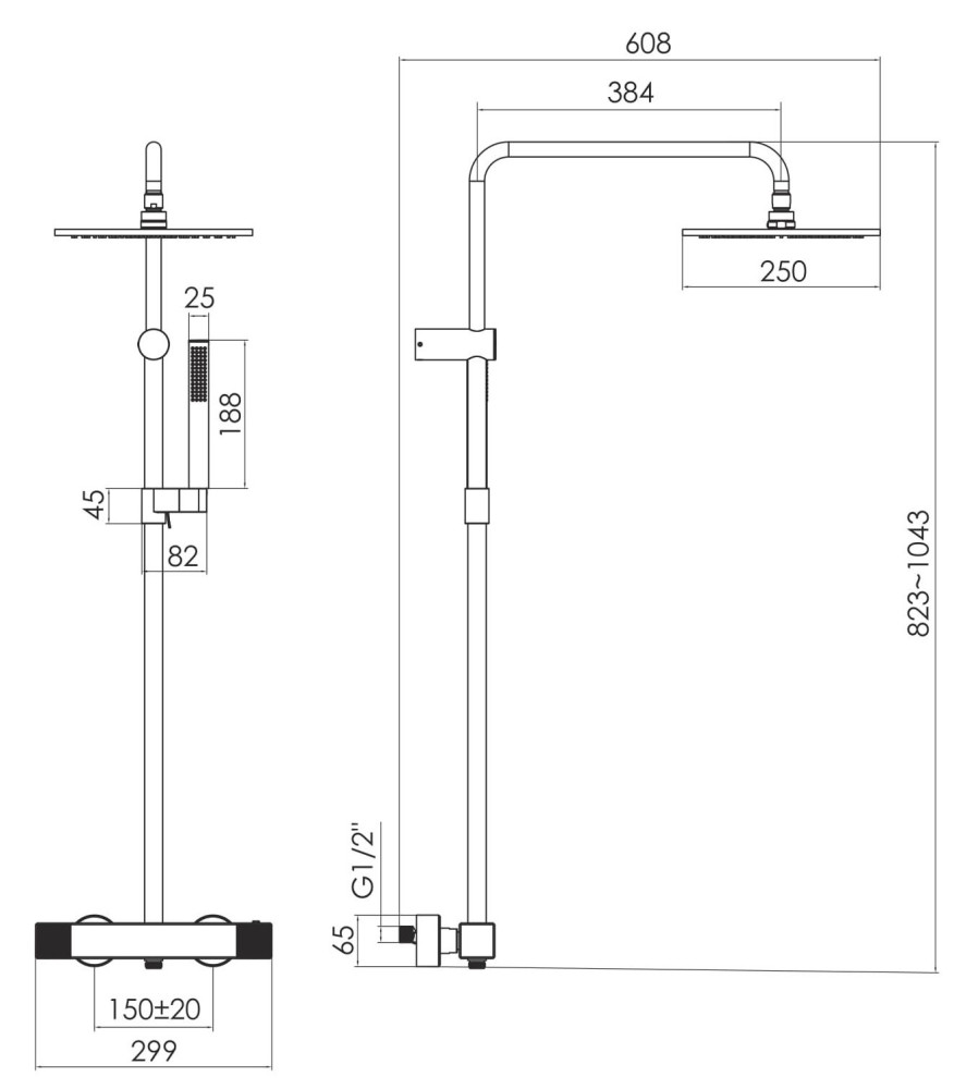 Размеры верхнего душа - 250 мм,