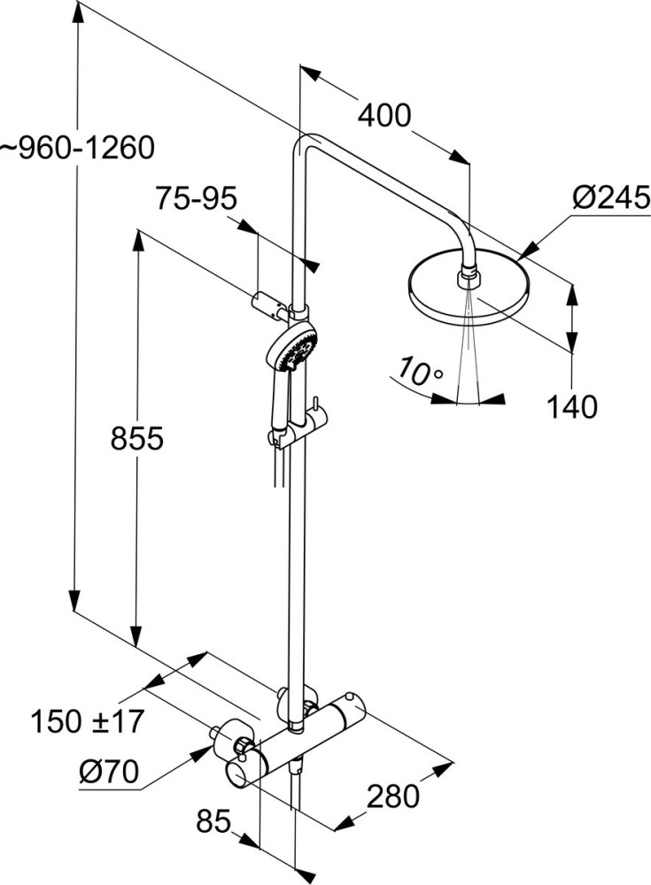 Угол наклона (верхний душ) - 10 °,