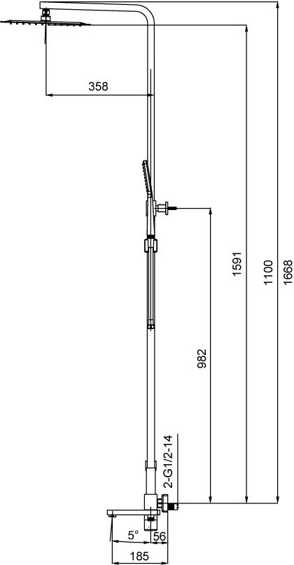 Форма верхнего душа - квадратная,