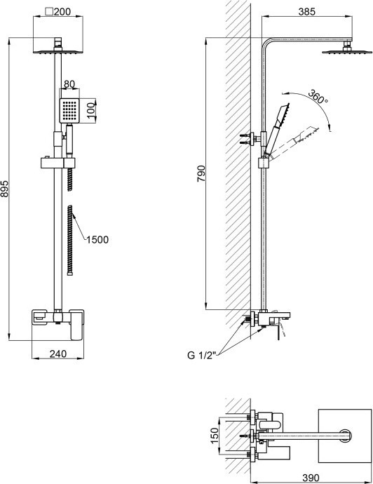 Форма верхнего душа - квадратная,