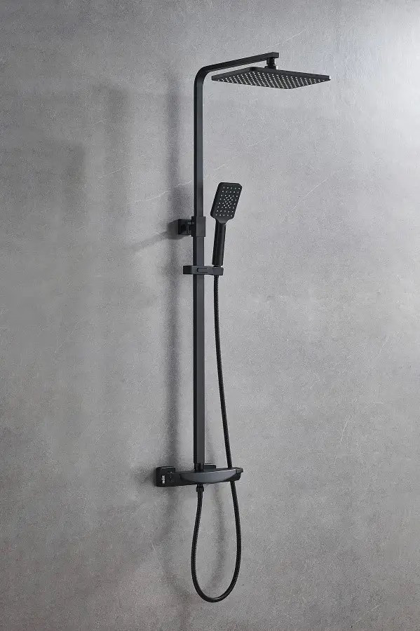 Чорна душова система з термостатом зовнішнього монтажу Nett STB-32