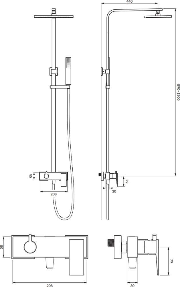 Размеры панели / стойки - 890-1300x440 мм,
