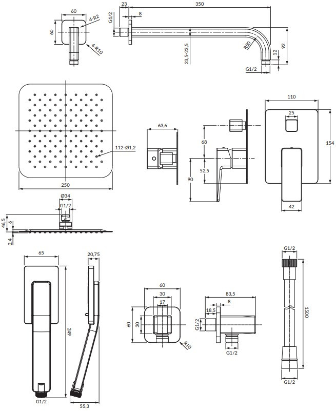 Форма верхнего душа - квадратная,