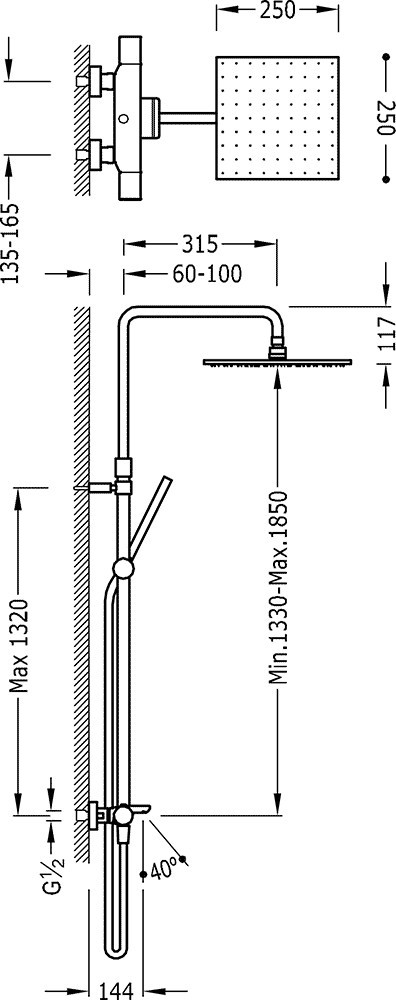 Форма верхнего душа - квадратная,