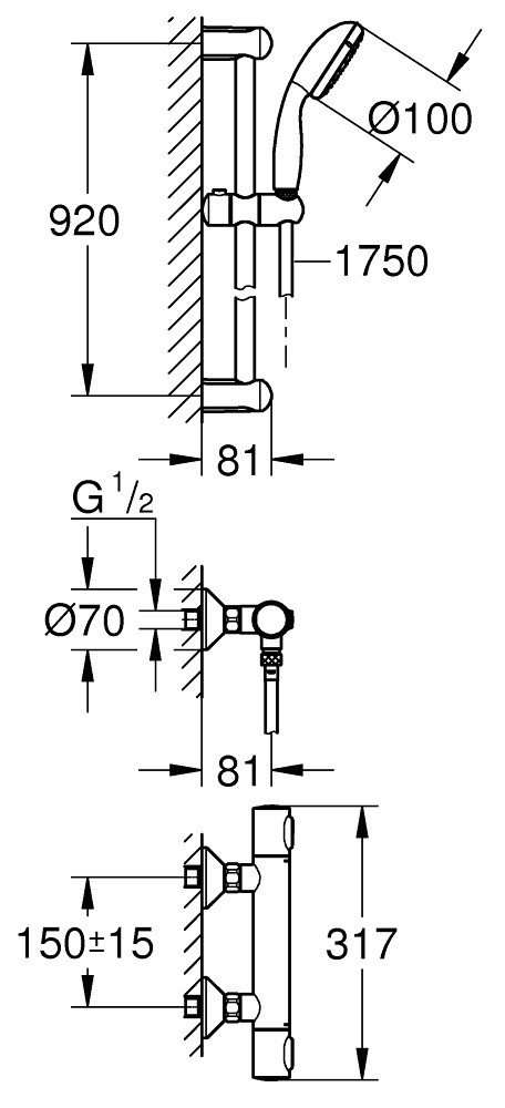 Размеры ручного душа