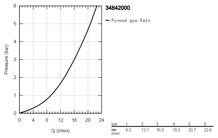 Расход воды (ручной душ) - 16 л/мин / при давлении 3 бар /,