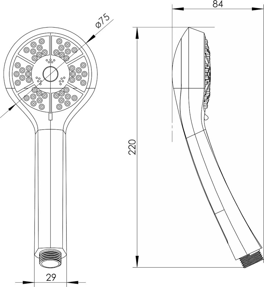 Размеры ручного душа - 75 мм,