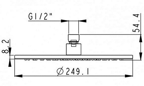 Размеры верхнего душа - 249 мм,