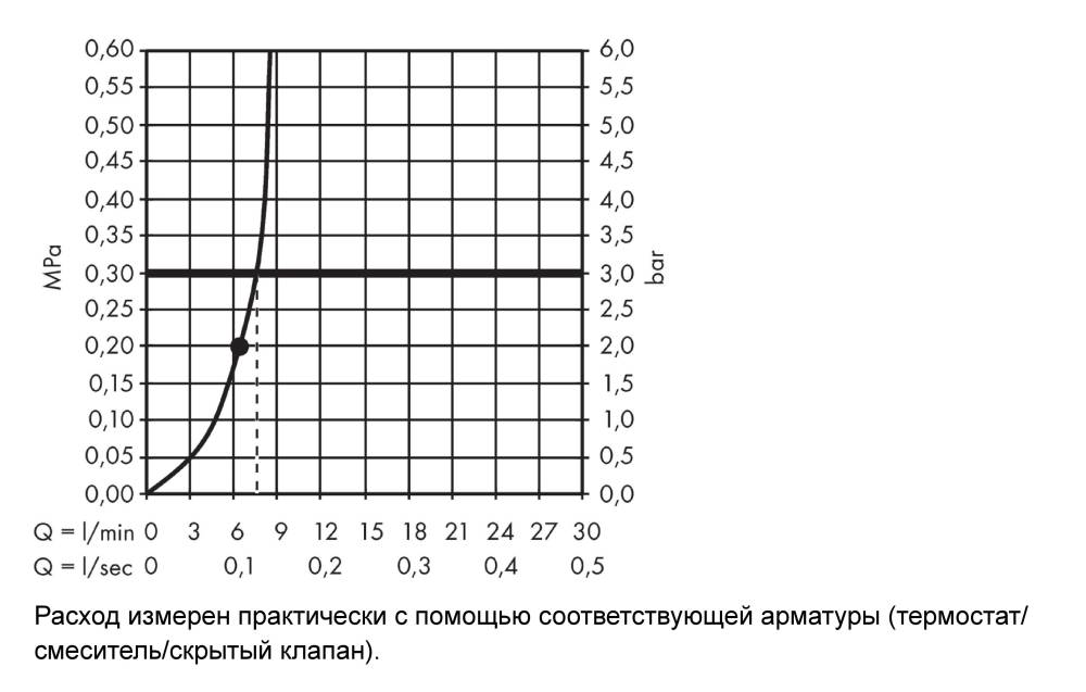 Расход воды (верхний душ) - 9 л/мин / при давлении 3 бар /,