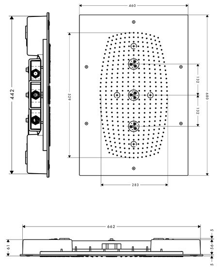 Размеры верхнего душа - 680 мм / 680x460 мм /,