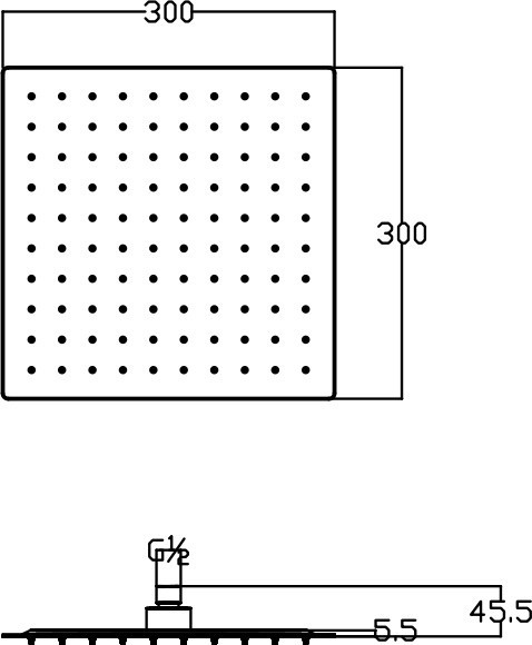 Размеры верхнего душа - 300 мм,