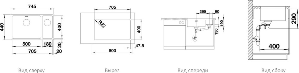 Тип монтажа - под столешницу,