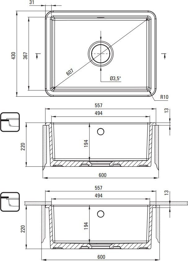 Тип монтажа - врезная накладная под столешницу,