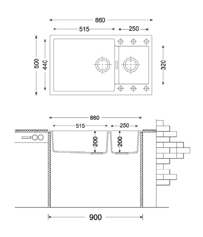 Кухонная мойка Fabiano Quadro 86x50x15