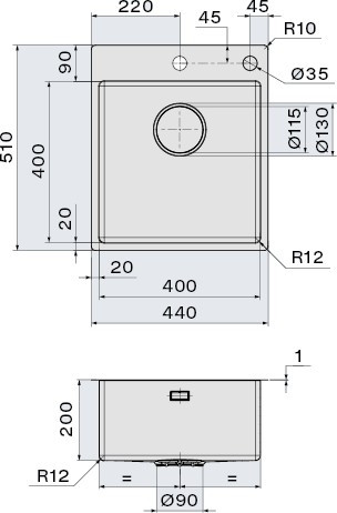 Диаметр отверстия под смеситель - 35 мм,