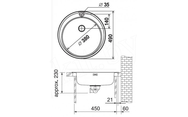 Мин. ширина шкафа (базы) - 450 мм,