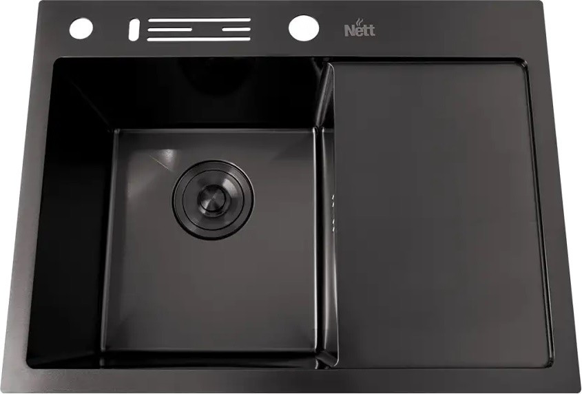 Чорна кухонна мийка накладна з правим крилом 1.5 мм Nett NB-6045(R) (NT-043125)