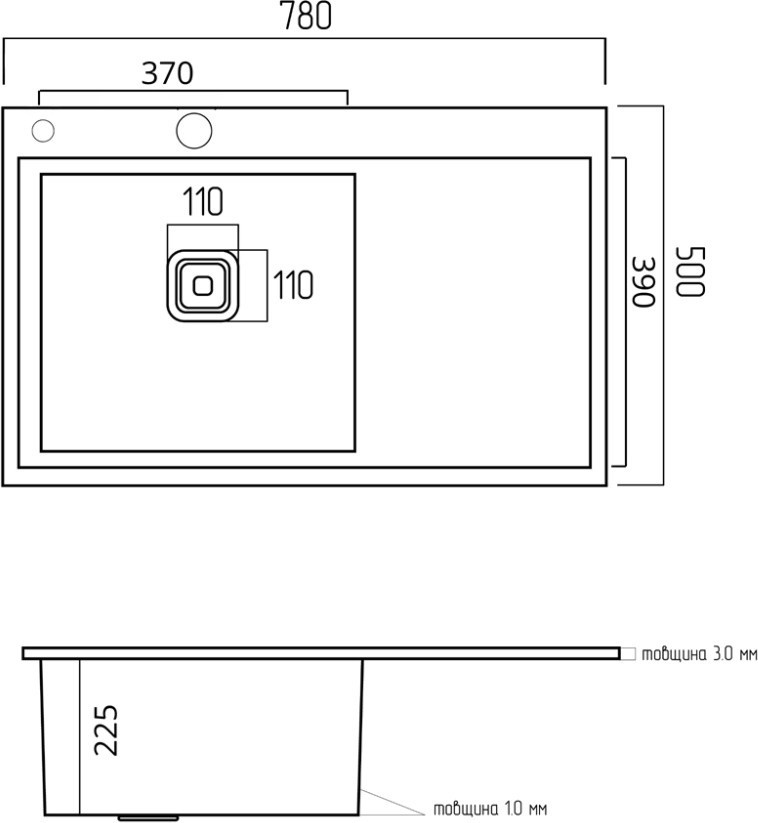 Мийка нержавійка Platinum Handmade 78*50B L (два отвори ,квадратний сифон 3.01.0)