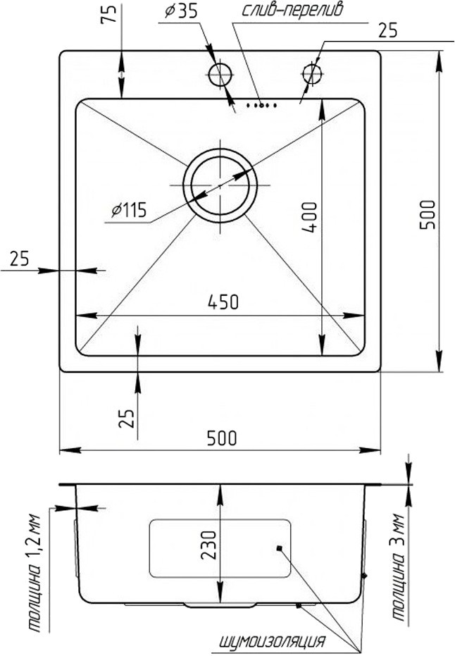 Диаметр отверстия под смеситель - 35 мм,