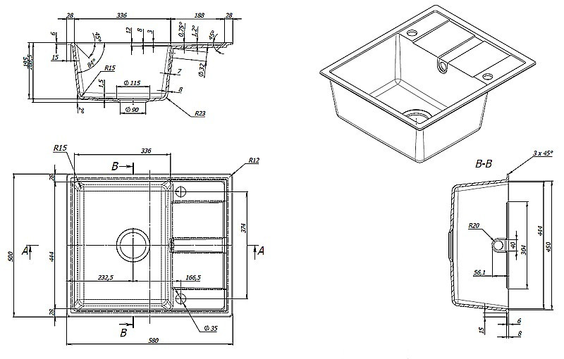 Тип монтажа - врезная накладная под столешницу,