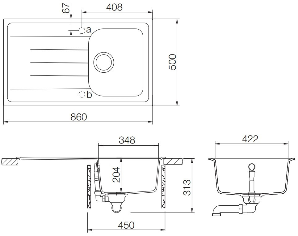 Тип монтажа - врезная накладная под столешницу,