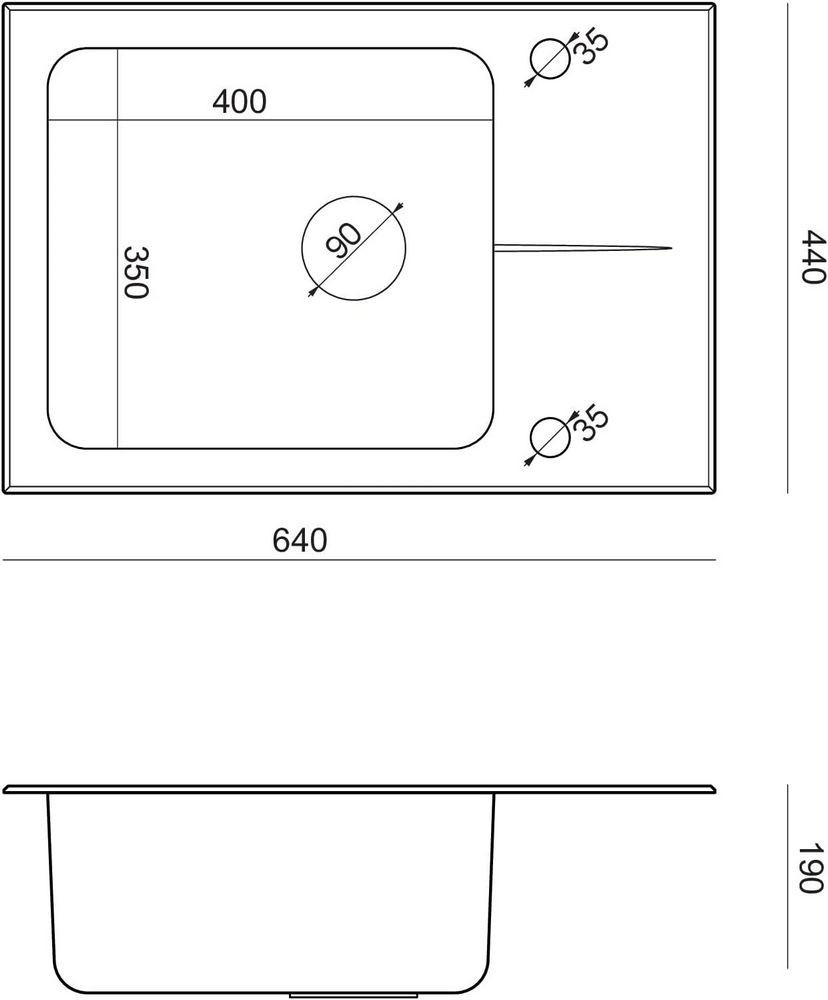 Диаметр отверстия под смеситель - 35 мм,