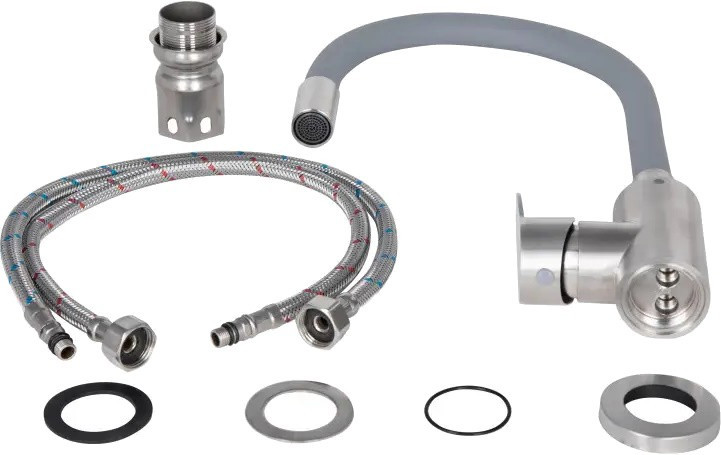 Комплектация - смеситель / Romzha Flex RO41581 / дуршлаг для мойки (коландер) сифон,