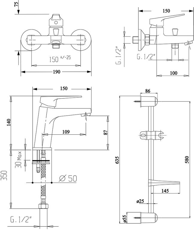 Набор смесителей Bianchi Bonny KITBON2021SMCRM