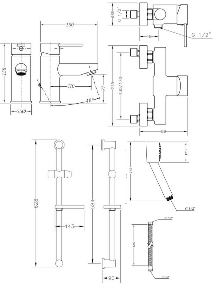 Набір для душа зі штангою GENEBRE Tau2 04TA2D17RO (65135294566 + 65110294566 + 163845)