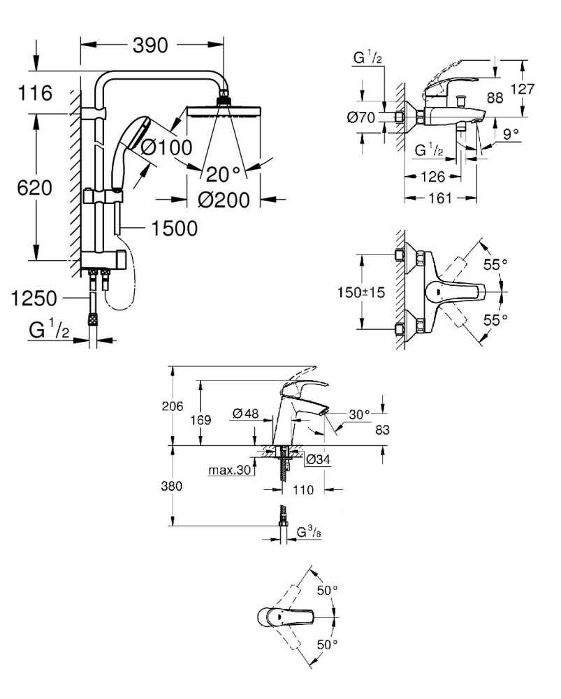 Набір змішувачів GROHE Eurosmart 123389M (23324001+27389002+ 3300002)