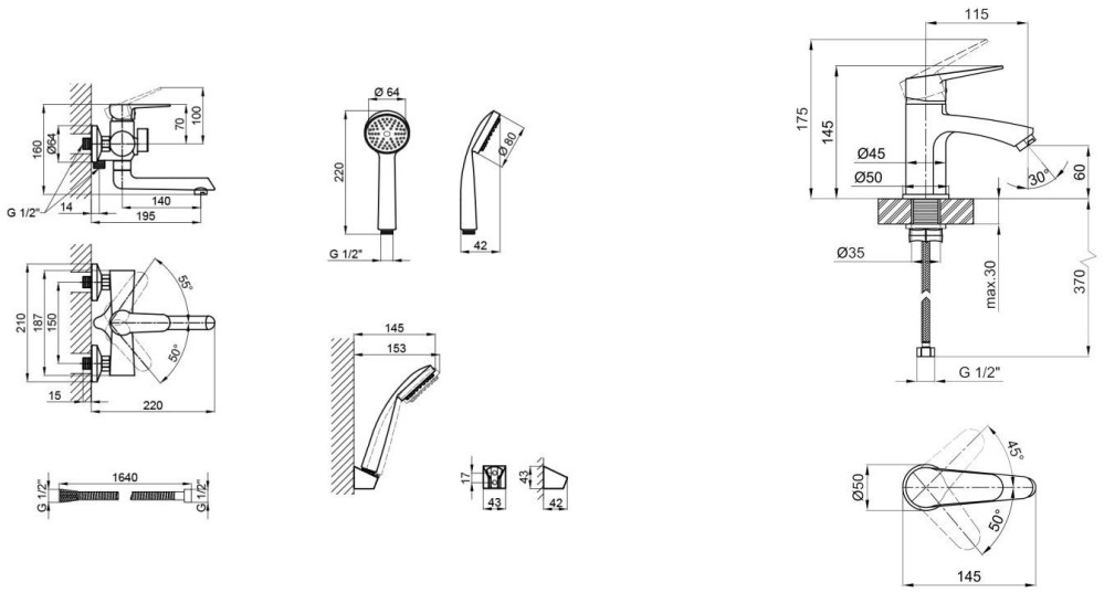 Ручной душ (душевая лейка) - 1 режим,