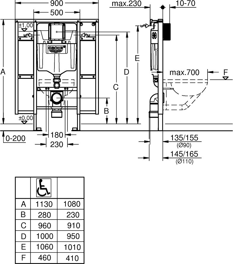 Монтажная высота - 1080 мм,