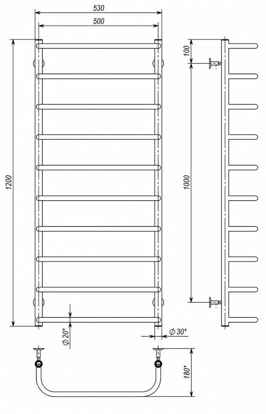 Полотенцесушитель Deffi Standart P10 500x1200 (СС 120.50.10)