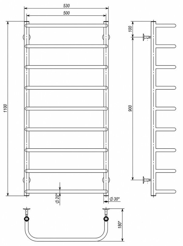 Полотенцесушитель Deffi Standart P9 500x1100 (СС 110.50.9)