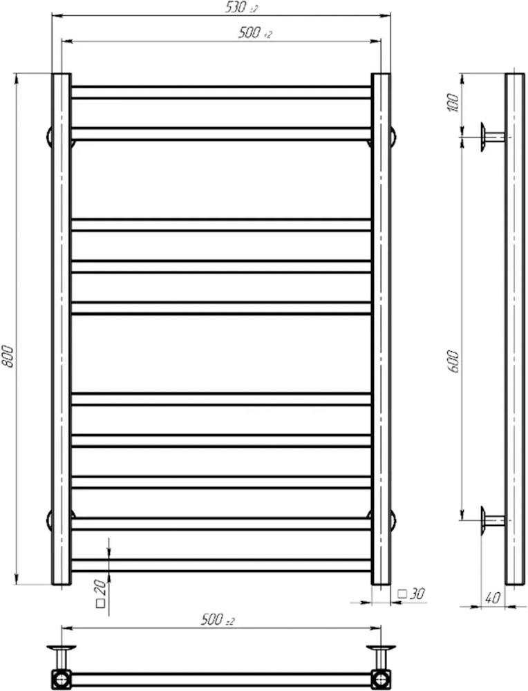 Полотенцесушитель Devit Universal E 500x800 UN500800EBS