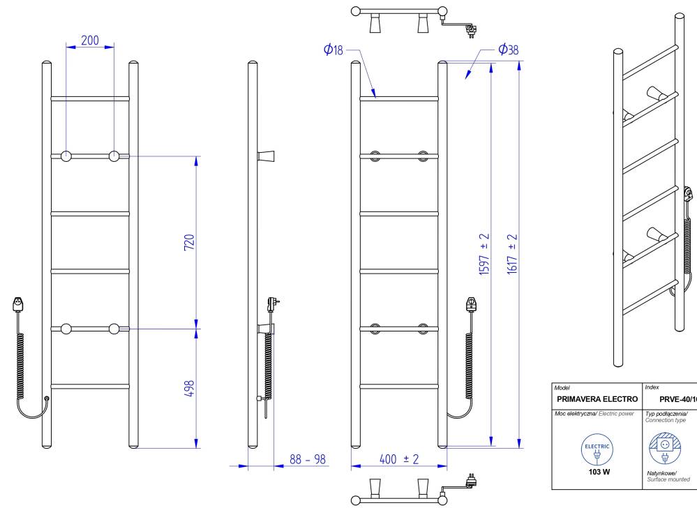 Полотенцесушитель Instal Projekt Primavera 400x1600 PRVE-40/160C34