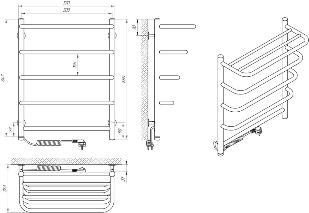 рушникосушка Laris Стандарт П5 500x660 з полицею, електро, ліве підключення S3 (73207842)