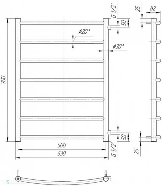 Полотенцесушитель MARIO Classic B/P-1 550x900 1.1.2205.02.P