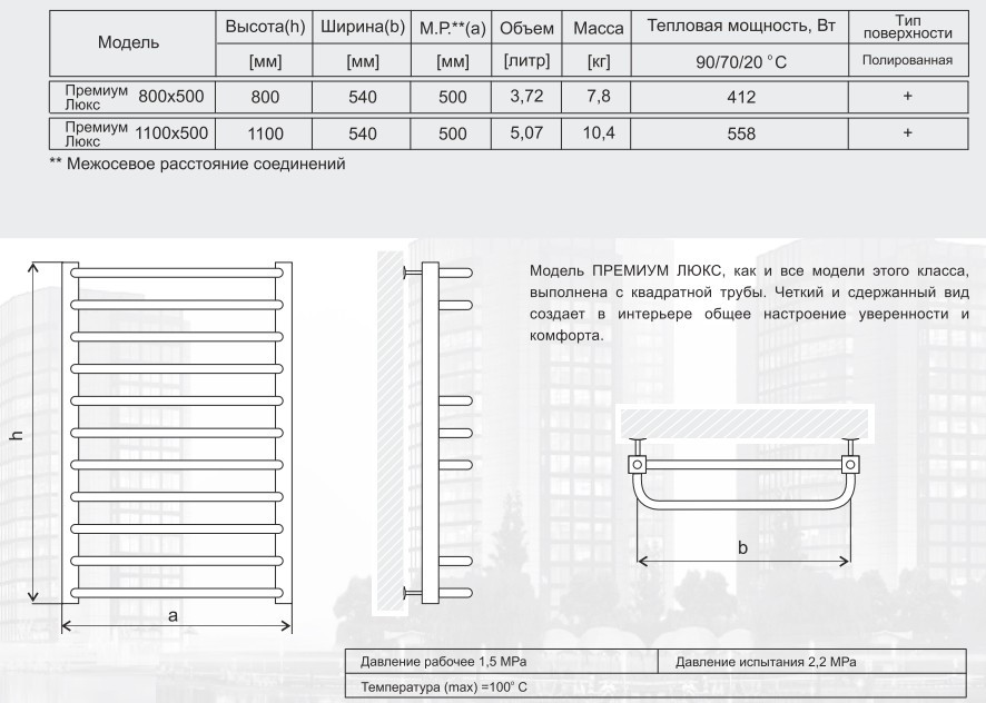 Полотенцесушитель MARIO Premium Lux 500x1100 (1.2.0302.03)