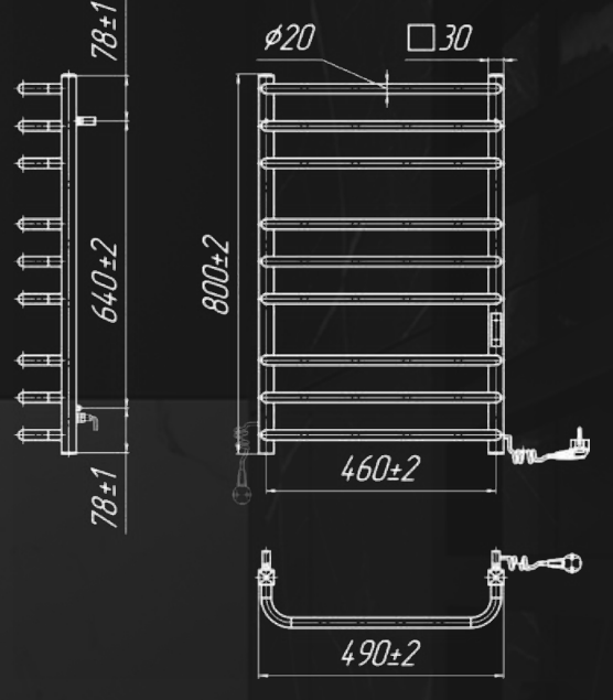 Рушникосушарка електрична Mario ПРЕМІУМПреміум Стандарт-I 800х500170 TR К 2.2.1508.03.P